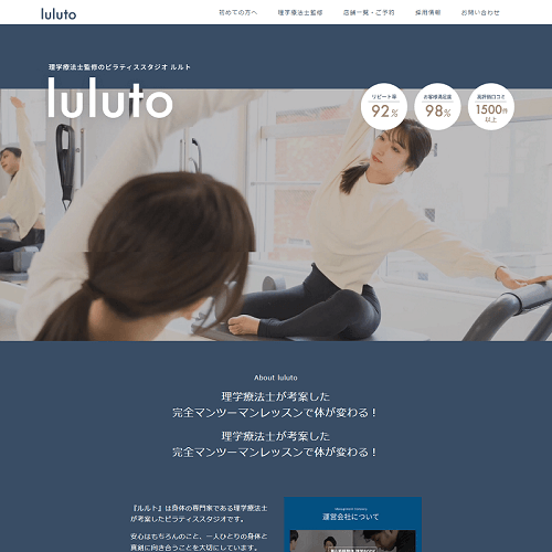 全国に88店舗展開(2025年12月時点)、理学療法士の監修でマンツーマンレッスンのマシンピラティス専門スタジオ「ルルト」。