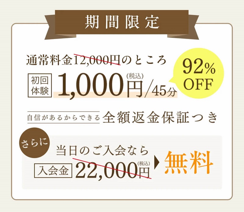 初回の体験レッスンが、通常12,000円(税込)のところ92%オフの1,000円(税込)で受けられます。